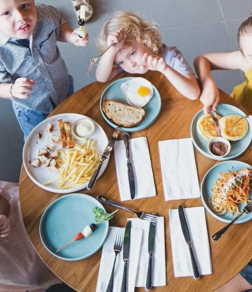 Morning coffee is taken seriously at the bistro downstairs — so are the eggs. The spa does things right: warm oils, practiced hands, no piped-in flute music. There’s a salon for effortless hair, and a rooftop bar that serves proper drinks with a view. The pool is outdoors, the design is sharp, and the playground doesn’t scream primary colors.