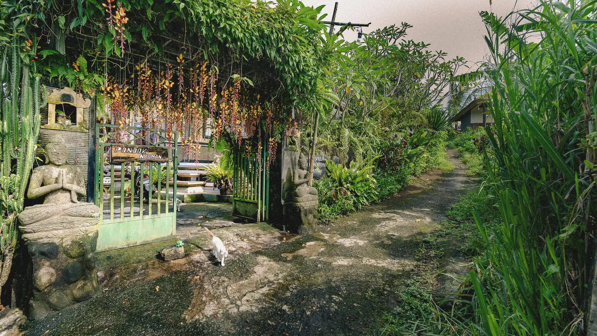 • Cats wander freely, plants everywhere, paths that lead you into the rice fields — pure magic.