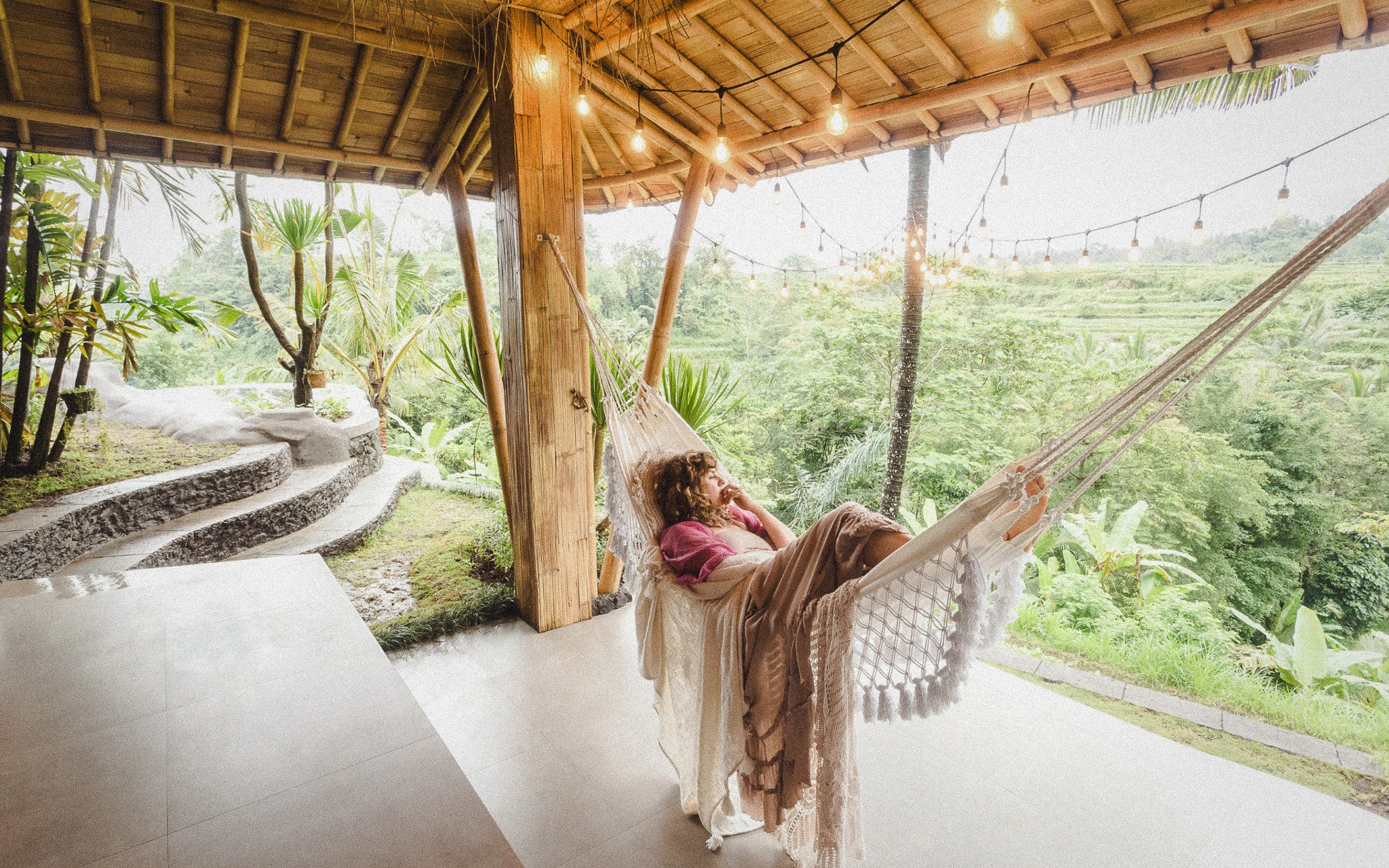 Joglo adaptations, tropical brutalism, reclaimed timber, lime-based plasters, volcanic stone, terrazzo — these aren’t trends here. They’re survival strategies.